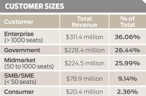 The largest chunk of CRN Fast50 revenue came from enterprise and government customers – no surprise, really, given the bigger budgets and larger projects involved.