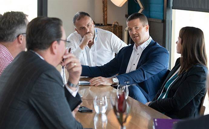 Lee Welch (centre) hosts the Ingram Micro 'happy hour' boardroom