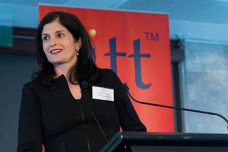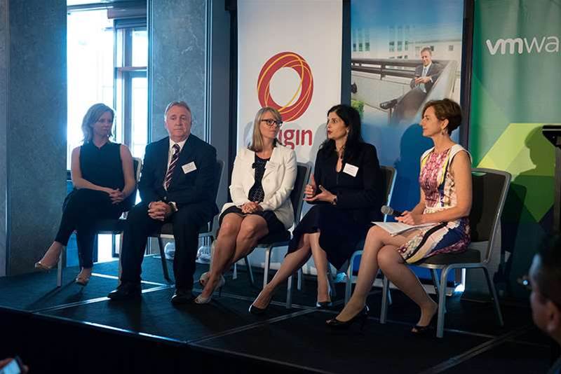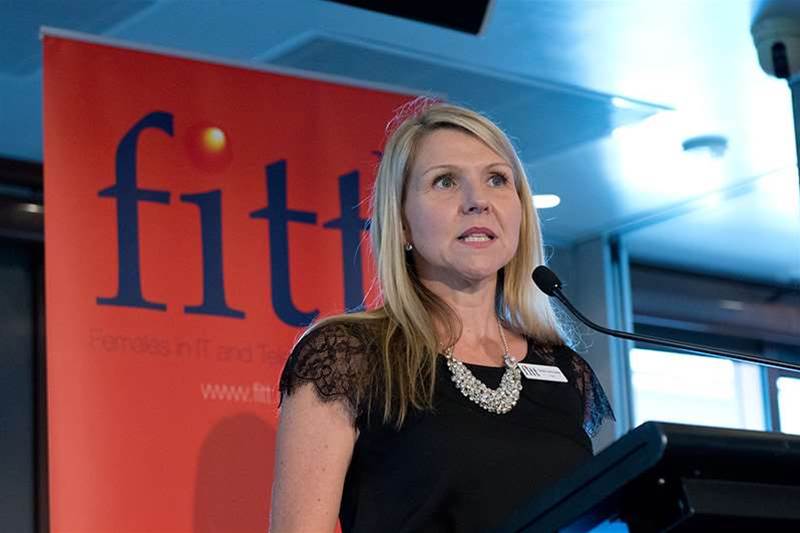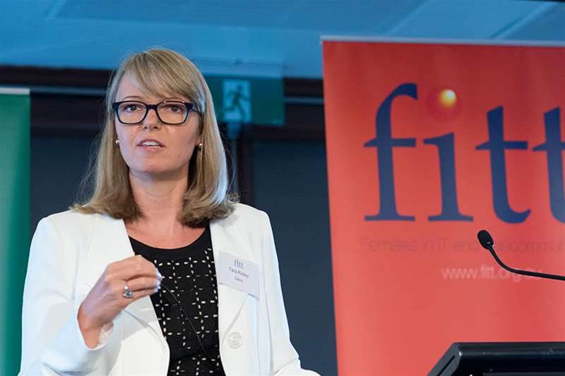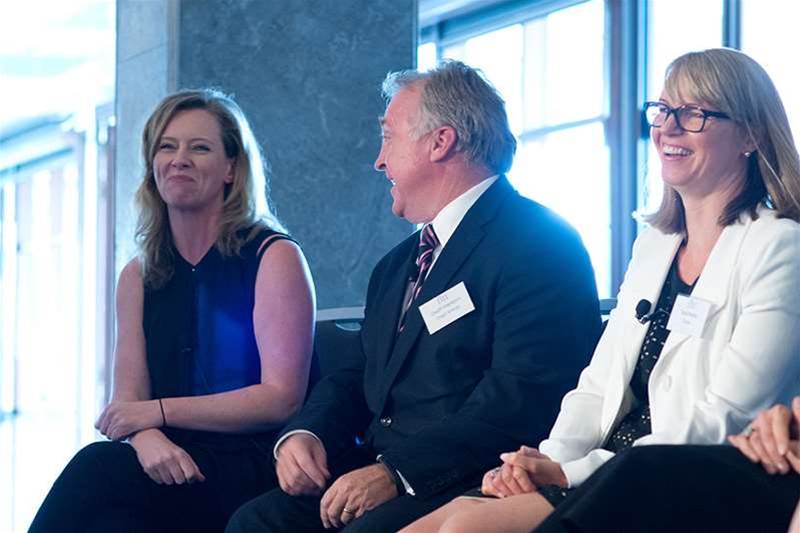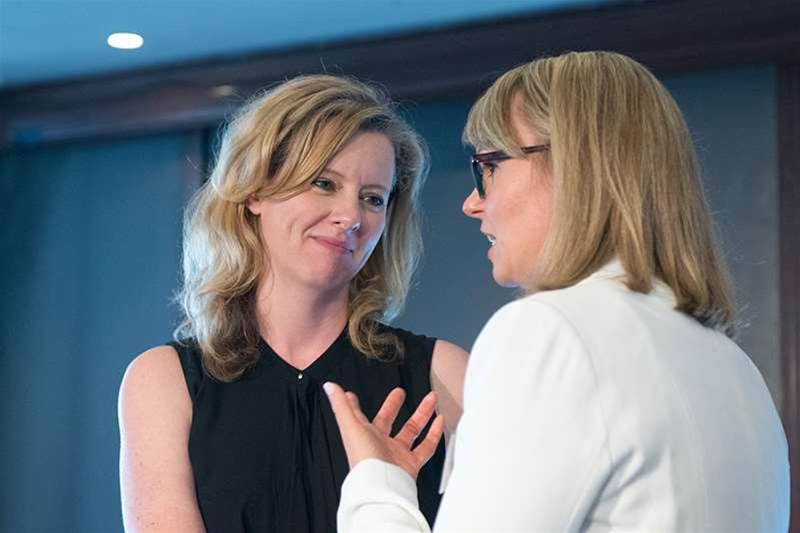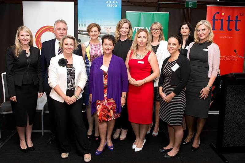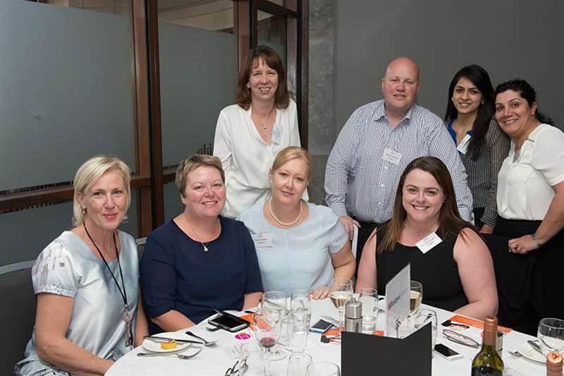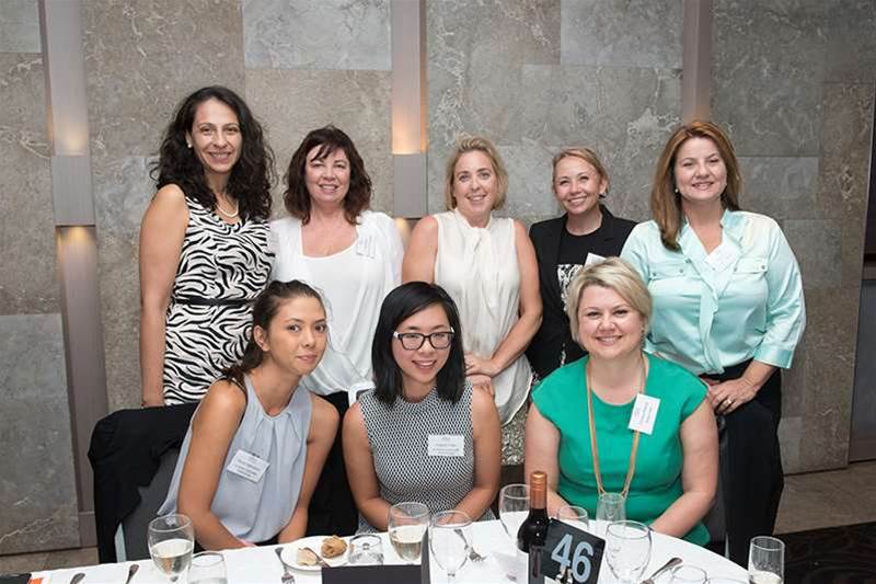 Back: Steven Kiernan (CRN), Maree Lowe (ASI), Kate Davis (Dicker Data), Donna Adam (Dimension Data), Valeria Ignatieva (FITT), Stacey Beer (UXC Connect), Matt Child (CRN)