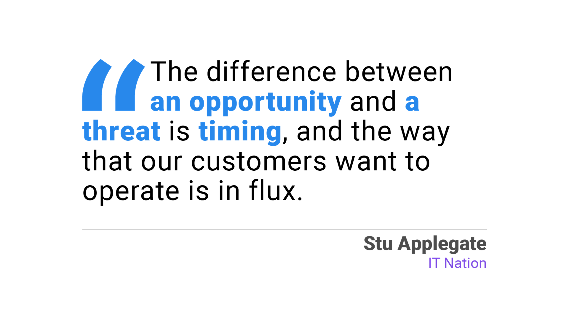 “As MSPs, we’ve copped these waves more than anyone else, as we’ve gone from break/fix to managed services” Applegate said. “We have to change our conversations, because if we don’t, we’ll get left behind and become irrelevant.”