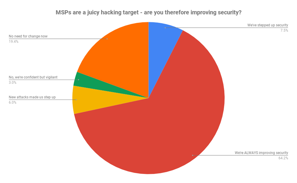 77 percent of respondents said they’ve been improving their security posture, either in response to recent events or because it's just what they need to do in this business!