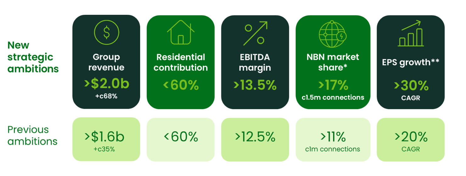 Reflecting the company’s recent M&A activity, Aussie Broadband also upgraded its Look-to-28 strategic ambitions, targeting significant market revenue growth, expanding EBITDA margin and resultant EPS growth.