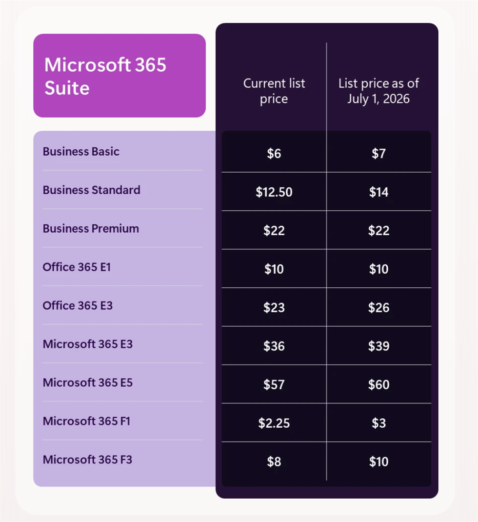 Microsoft is updating its commercial pricing for Microsoft 365 suite subscriptions, effective July 1, 2026.