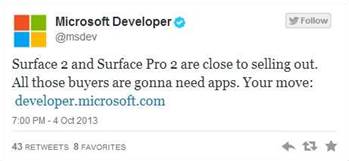The claim, which emerged from the Microsoft Developer Twitter account, formed part of a message aimed at encouraging developers to get cracking on Windows 8.1 apps.