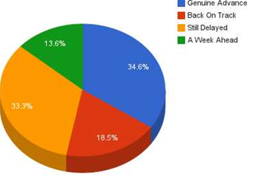 A further 18.5 percent — or 15 stages — could be considered 'back on track'. Effectively, they had service ready dates that slipped between January and February, but that have reverted to the original timeframe once more.