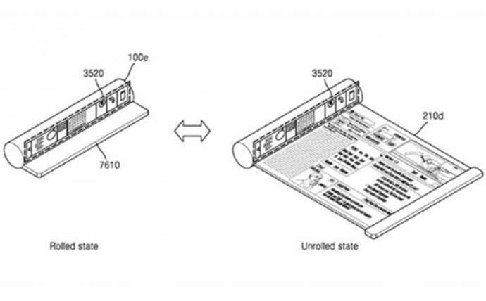 Samsung envisages the smartphone will exist in two main states; folded and unfolded. When folded, the smartphone should look like an unopened scroll. When ready for action, users will pull a tab to unfurl the device's flexible screen.