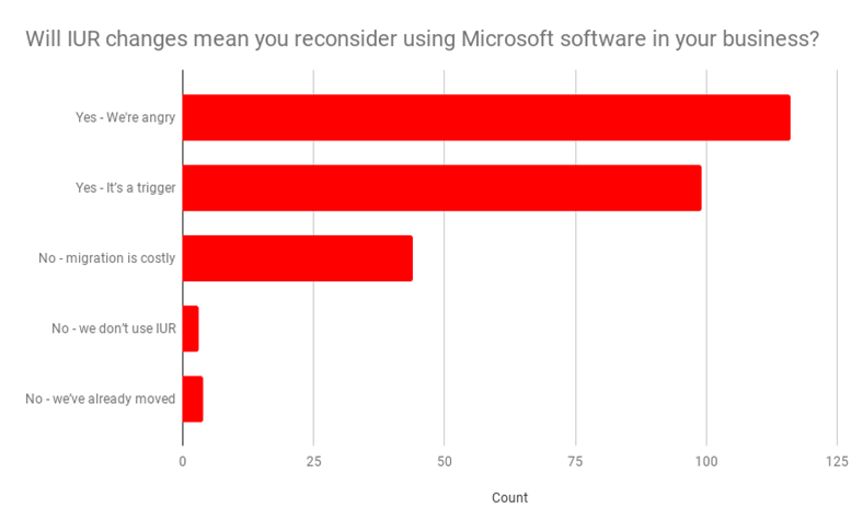 Trust in Microsoft has also collapsed: 97 percent of the 272 respondents said they trusted Microsoft less after the decision to remove IUR.